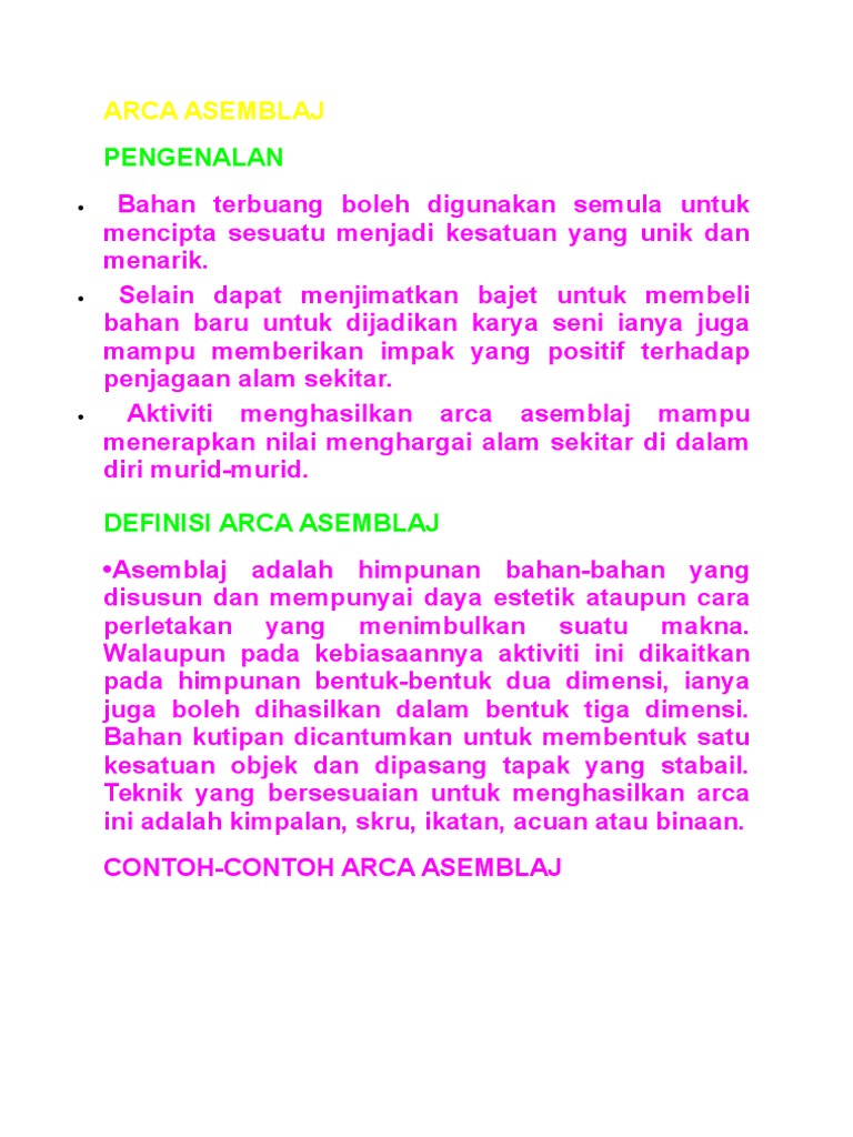 Sejak november 2010, angklung menjadi terdaftar sebagai alat musik tradisional karya agung warisan budaya lisan dan nonbendawi. Pada prinsipnya, segala sesuatu yang memproduksi suara, dan dengan cara tertentu bisa diatur oleh musisi, dapat disebut sebagai alat musik. Kendang atau yang biasa disebut dengan gendang adalah alat musik tradisional betawi yang biasanya terbuat dari kayu nangka, kelapa, dan kayu cempedak. Pendidikan seni visual tingkatan 3 tajuk 4 seni arca. Alat musik ritmis adalah alat musik yang hanya dijadikan sebagai pengiring saja.