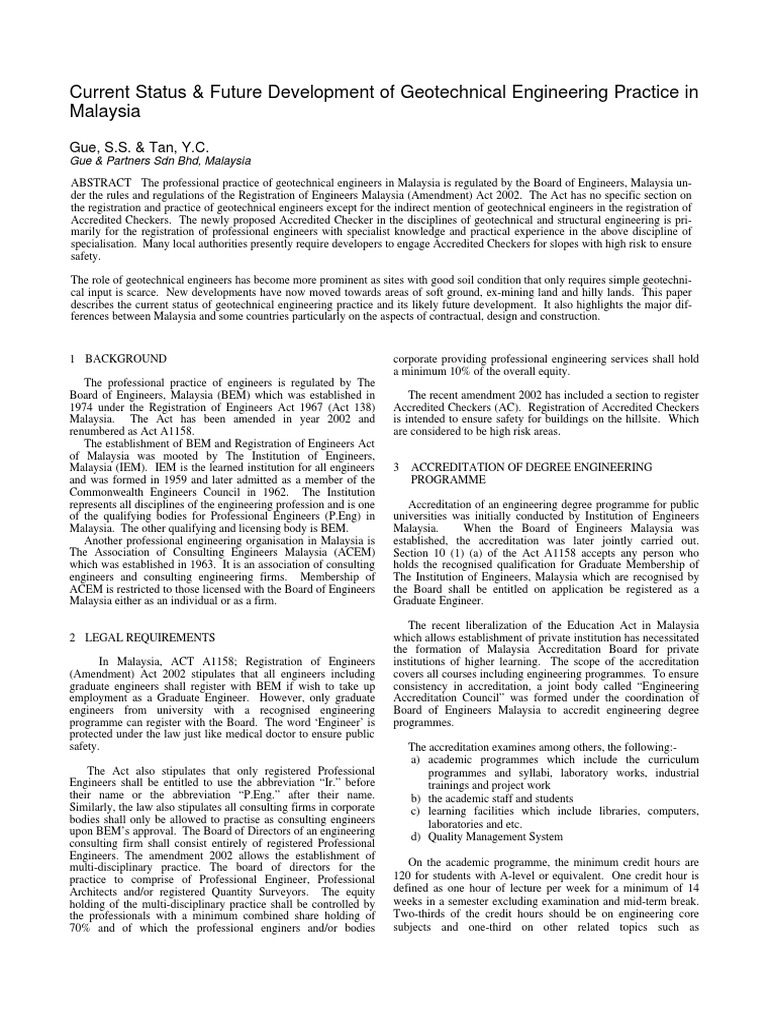Current Status Future Development Of Geotechnical Engineering Practice In Malaysia Geotechnical Engineering Engineer from imgv2-1-f.scribdassets.com Best law schools in malaysia according to qs and setara ranking. Ministry of higher education (mohe). The bond university bachelor of laws (llb) degree is one recognised by the admitting authorities in malaysia for the purpose of being called to the bar. Our graduates have also been admitted to practise in malaysia, in several commonwealth jurisdictions such as australia, canada and the united kingdom, and some. This is your guide to studying law in malaysia. The ministry of higher education, malaysia ranked um under the rating system for malaysian higher education institutions (setara) following an academic reputation. Kuala lumpur, july 21 — the attorney general must explain why the legal profession qualifying board (lpqb) has yet to recognise the law degree from universiti sains islam malaysia (usim), umno deputy president datuk seri mohamad hasan said today. The certificate of legal practice or clp is useful or rather important if the person would like to practice law in malaysia as an advocate and solicitor to.