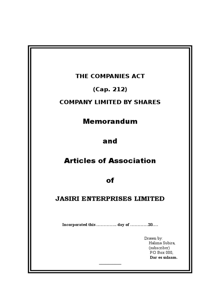 Related : Memorandum And Articles Of Association Malaysia : Memorandum and articles of associations..