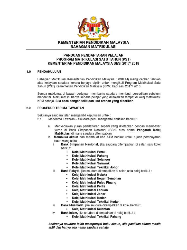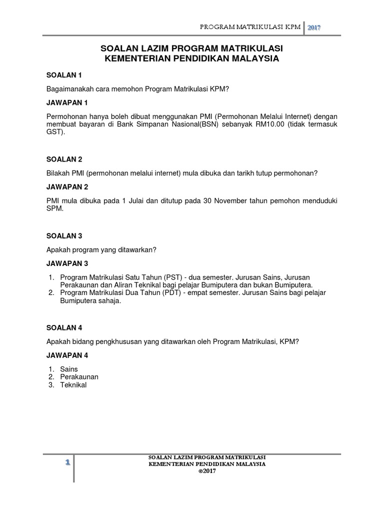 Related : Pendaftaran Matrikulasi Sesi 2017 - Permohonan program matrikulasi sesi 2018/2019 online | anda pelajar tingkatan 5 tahun 2017?.