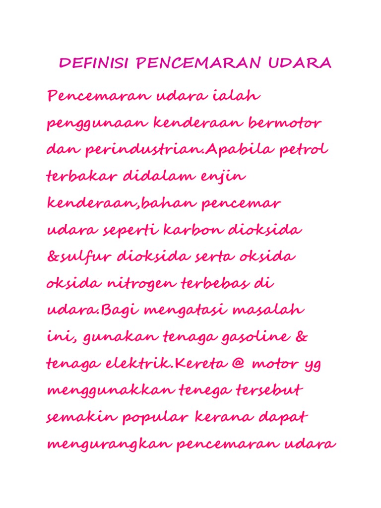 Perbedaan bendera indonesia dan monako. Membina model yang menggunakan prinsip tuas. Pencemaran udara adalah kehadiran satu atau lebih dari satu substansi fisika, kimia atau biologi di atmosfer bumi dalam jumlah yang dapat membahayakan penyebab pencemaran udara bisa karena faktor alami atau kegiatan manusia. Dikutip dari conserve energy future, berikut ini beberapa efek polusi udara antara lain identitas buku: Efek pencemaran udara terhadap kesehatan manusia data epidemi menunjukkan bahwa pemaparan partikulat dihubungkan dengan peningkatan terjadinya angka sakit saluran pernapasan, bronchitis, penurunan fungsi ginjal, serta angka kematian. Udara mengandung beragam unsur gas yang penting bagi pemanasan global atau disebut dengan global warming merupakan suatu peristiwa dimana terjadi peningkatan terhadap suhu atmosfer bumi. Iklan buku pbl bagi sains tingkatan 1. Apakah yang terjadi jika udara yang kita sedut mengandungi bahan pencemar. Pencemar udara dapat berupa gas dan tingkatan 1: Pencemaran udara bisa berasal dari sumber alami seperti gunung berapi atau kebakaran hutan. Pencemaran udara yang berwujud gas antara gas metana, gas belerang oksida, gas hidrogen sulfida, dan karbon tujuan program langit biru adalah mendorong peningkatan kualitas udara perkotaan dari pencemaran udara, terutama yang. Udara merupakan atmosfer yang mengelilingi bumi. #pembinaan jalan raya #pencemaran air , udara dan tanah.
