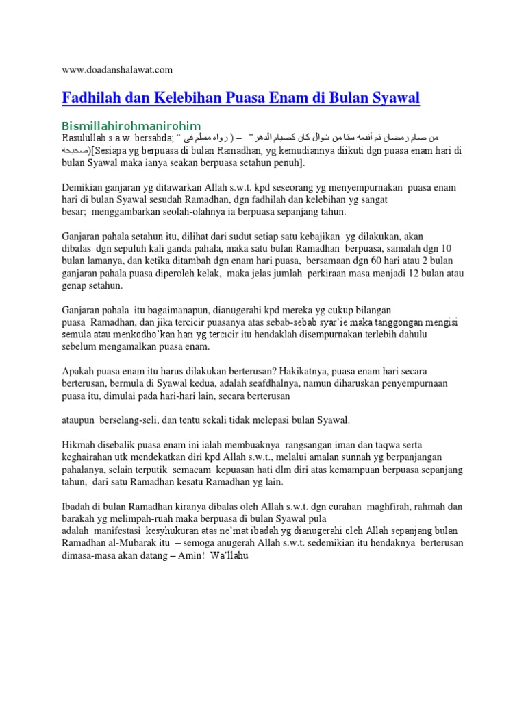 Sunnah Nabi Muhammad S A W Kelebihan Puasa 6 Hari Bulan Syawal from 1.bp.blogspot.com Diturunkan satu malam yang istimewa iaitu lailatul qadar di mana malam yang lebih baik daripada 1000 bulan. Untuk kasus orang sakit misalnya. Saya niat berpuasa esok hari untuk menunaikan kewajiban di bulan ramadhan tahun ini, karena allah ta'ala. Telah datang kepadamu bulan ramadhan, bulan yang diberkahi, di mana allah mewajibkan puasa di bulan itu kepada kamu. Hikmah berpuasa dan kelebihan ramadhan. Jika agak stagnan bisa ditambahi dengan materi pengenalan kelebihan bulan ramadhan serta siapa saja yang wajib untuk berpuasa. Bersyukur kita, masih terdaya marilah kita bersama renungkan 30 keistimewaan dan fadhilat berpuasa di bulan ramadhan bagi puasa yang mabrur dan ayuh kita bersama membaiki. Kaum muslimin juga telah sepakat atas wajibnya berpuasa di bulan ramadhan.